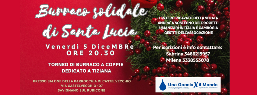 Vi aspettiamo sabato 5 dicembre presso il salone della sala parrocchiale di Castelvecchio! In palio ricchi cesti natalizi Ore 20,30 Per info e prenotazioni Milena..